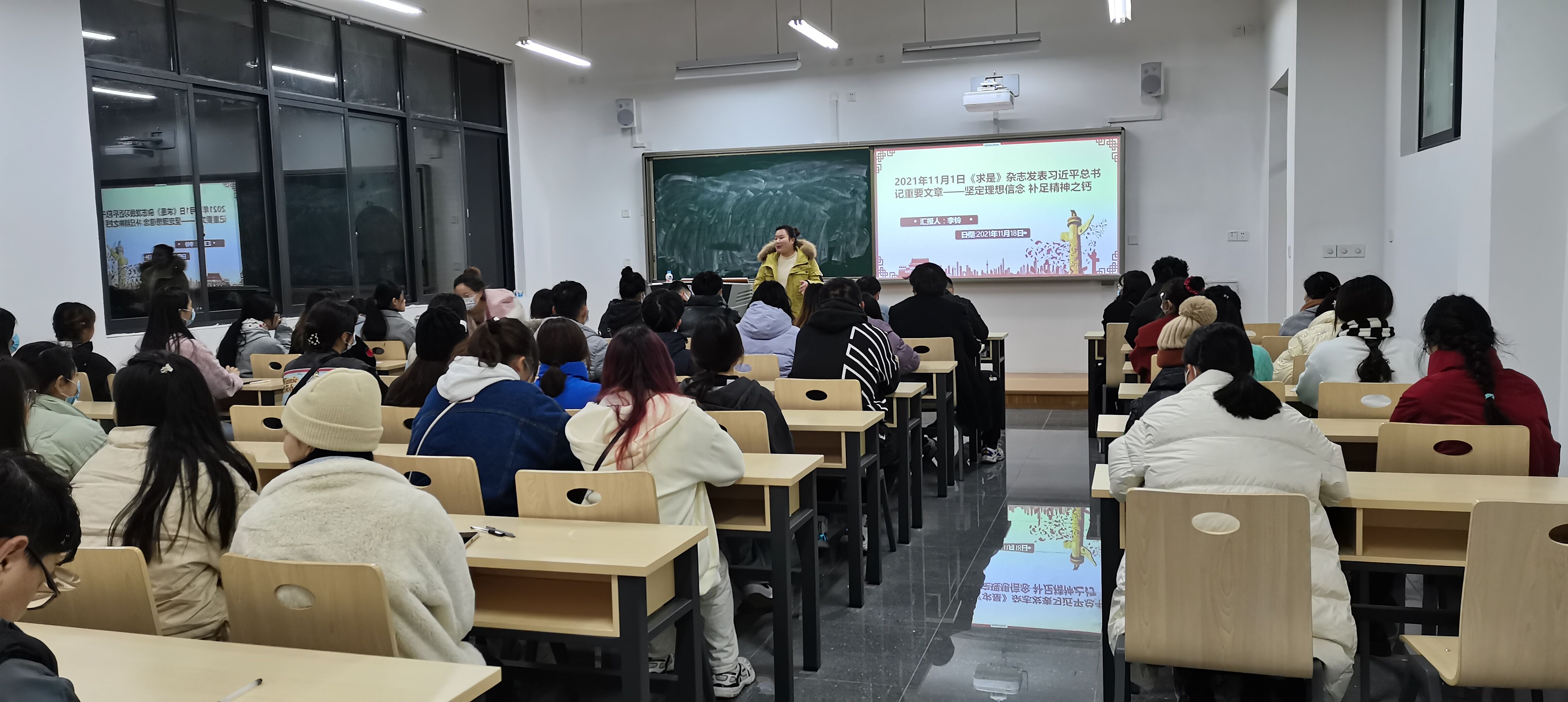 李铃老师首先从《求是》杂志发表习近平总书记重要文章的主要内容讲起,从什么是中国共产党人的理想信念、为什么要坚定理想信念、如何坚定理想信念三个方面,分享感悟和学习经验及成果。随后,李铃老师谈到革命理想高于天,中国共产党成立100年来,始终是有崇高理想和坚定信念的党。希望各位学生党员要把坚定理想信念作为终身课题,常修炼。最后,李铃老师告诫全体学生党员要始终坚持“一个中心、两个基本点”不动摇,努力学习党的思想理念,把自己塑造成为政治坚定,思想成熟,科学文化知识和专业知识过硬,德才兼备的合格大学生。