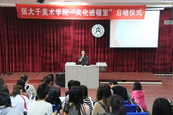 为了弘扬大千文化,传承大千艺术,英国BET体育365投注官网于5月7日中午12:00,在红楼401举办 “文化进寝室”启动仪式。我院党总支书记王继军,副书记彭永馨,团总支书记李仰锐,学工办辅导员杨荣金、蒋明芳、刘津辰,学生会主席团、宣传部、生活部全体学生干部,2011级1~4班各班班长、团支书以及22幢4楼的全体女生参加了本次启动仪式,启动仪式由李仰锐主持。