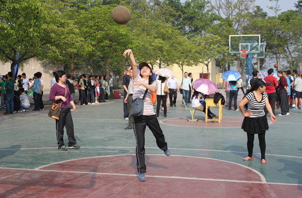 我院教工组的实力也不容小觑,成绩斐然。彭飞胜在男子跳远比赛中技压群芳,以4.69m的高分轻取亚军,廖泽明在男子400m的决赛中取得了第6名,老师们在运球上篮、定点投篮和托兵乓球接力的比赛中表现出色,现场掌声、欢笑声不断。