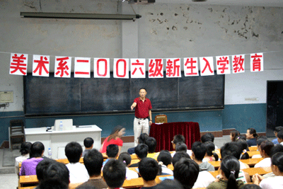 9月24日晚,美术系组织2006级新生在中文楼501阶梯教室举行了入学教育活动。系主任张强、书记唐再锋、副主任屈梅、各教研室主任、相关行政和教学人员以及班主任也参加了此次活动。