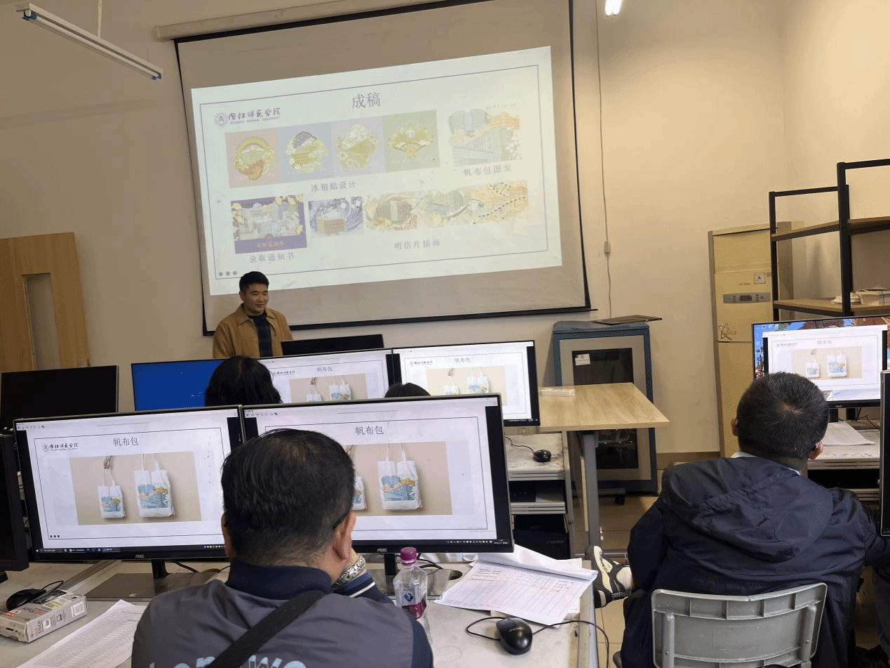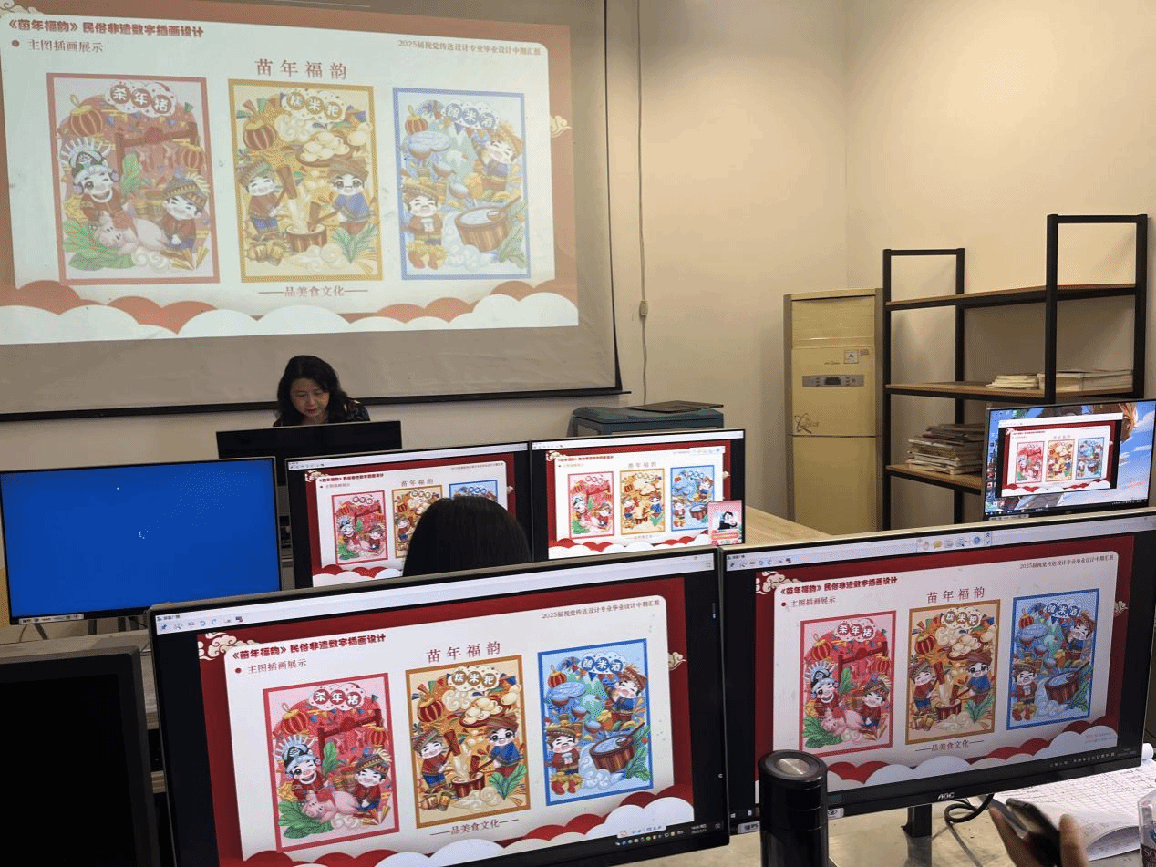 毕业设计(论文)(以下简称“毕设”)是本科教学中的核心实践环节,为确保视觉传达设计专业2025年度毕设工作顺利开展,及时了解和掌握学生毕设的进展情况,4月11日,视觉传达设计专业在学院院长罗凯、副院长罗真的积极支持下,进行了2025届本科毕设中期检查工作,副院长高登明及全体视觉传达设计毕设指导教师参加。