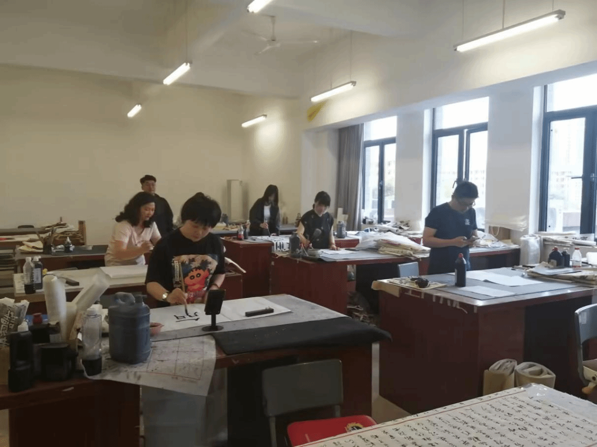 下午,比赛场地转至大千楼A205教室,书法比赛与自选题目创作环节相继展开。教师们各展所长,以多种形式,诠释自己对艺术的理解与感悟,作品风格多样,创意十足。