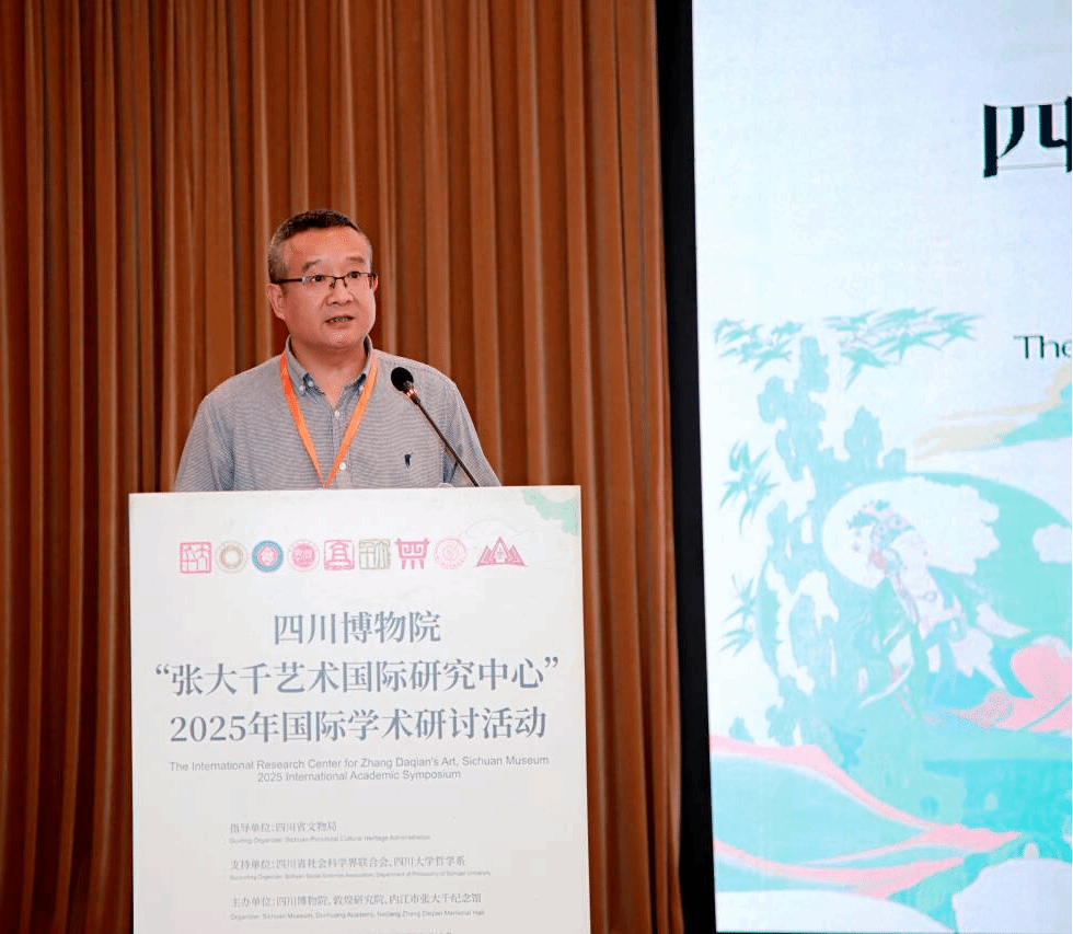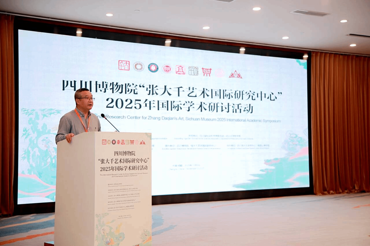 2025年11月6日上午8:20,由四川博物院、敦煌研究院、内江市张大千纪念馆主办的四川博物院“张大千艺术国际研究中心”2025年国际学术研讨活动,在成都金河宾馆举行,来自德国、美国、巴西、中国台湾等地以及全国各省市的文博、张大千研究、文化管理等方面的领导、学者、专家共约150人参加会议。英国BET体育365投注官网院长、四川张大千研究中心主任杨坤教授以及王平副教授、段汶利副教授、宋学勤副教授共四人受邀参加。杨坤教授被聘任为特聘专家,并担任上午的学术主持。王平副教授、段汶利副教授分别作主题分享。