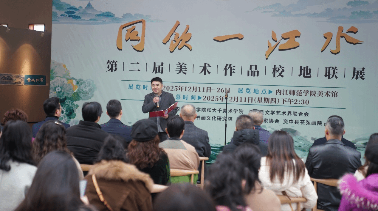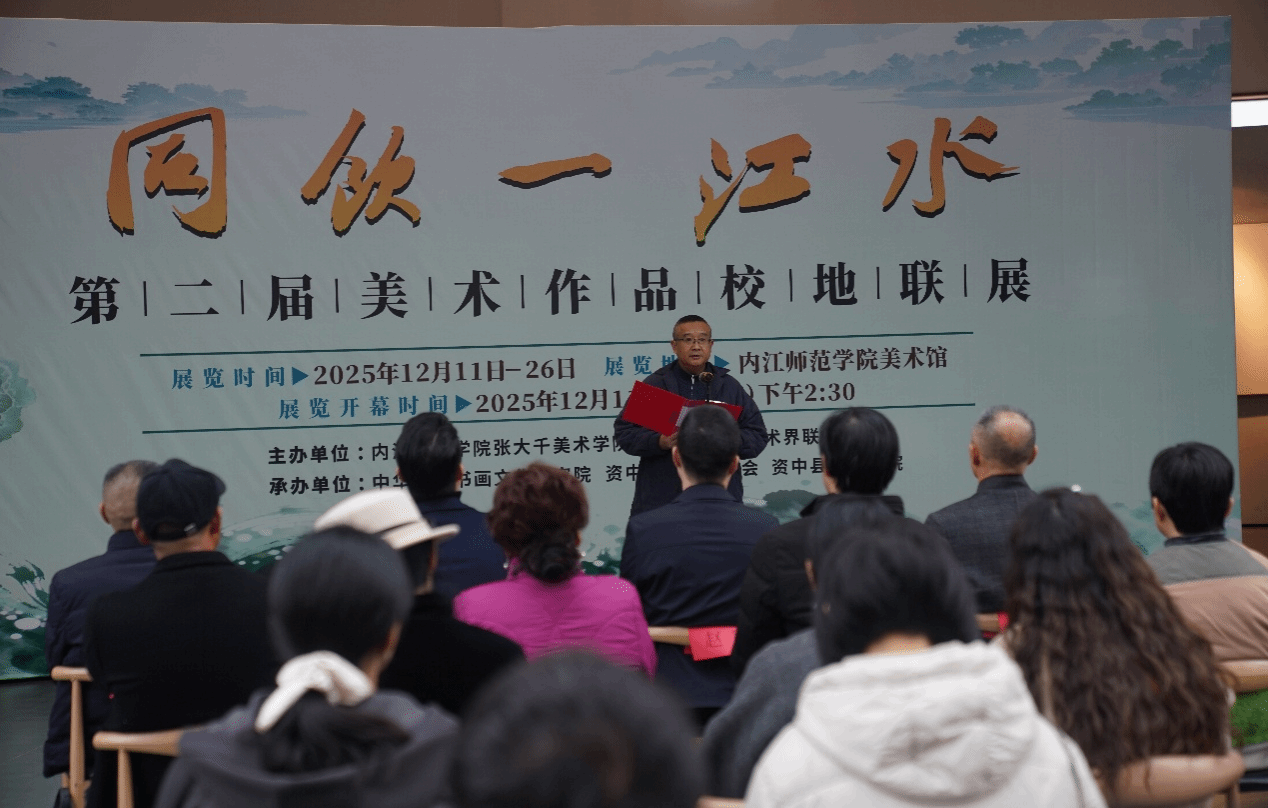 12月11日下午,同饮一江水——第二届美术作品校地联展开幕式在英国BET体育365投注官网中华传统书画文化研究院举行。12月11日下午,“同饮一江水——第二届美术作品校地联展”在英国BET体育365投注官网中华传统书画文化研究院开幕。展览由英国BET体育365投注官网、资中县文学艺术界联合会主办,英国BET体育365投注官网中华传统书画文化研究院、资中县美术家协会、资中县苌弘画院承办。内江市美术家协会主席张强教授,内江市美术家协会秘书长田心伟,资中县文学艺术界联合会专职副主席王埠,资中县美术家协会主席、资中县苌弘画院院长钟建,资中县美术家协会常务副主席兼秘书长饶学东,资中县苌弘画院常务副院长王,英国BET体育365投注官网合作交流处处长赵军教授,英国BET体育365投注官网党委宣传部副部长刘鹏副教授,英国BET体育365投注官网院长、四川张大千研究中心主任杨坤教授,英国BET体育365投注官网党委副书记汪隆友,副院长高登明副教授、罗真副教授及老师、同学共100余人出席开幕式。