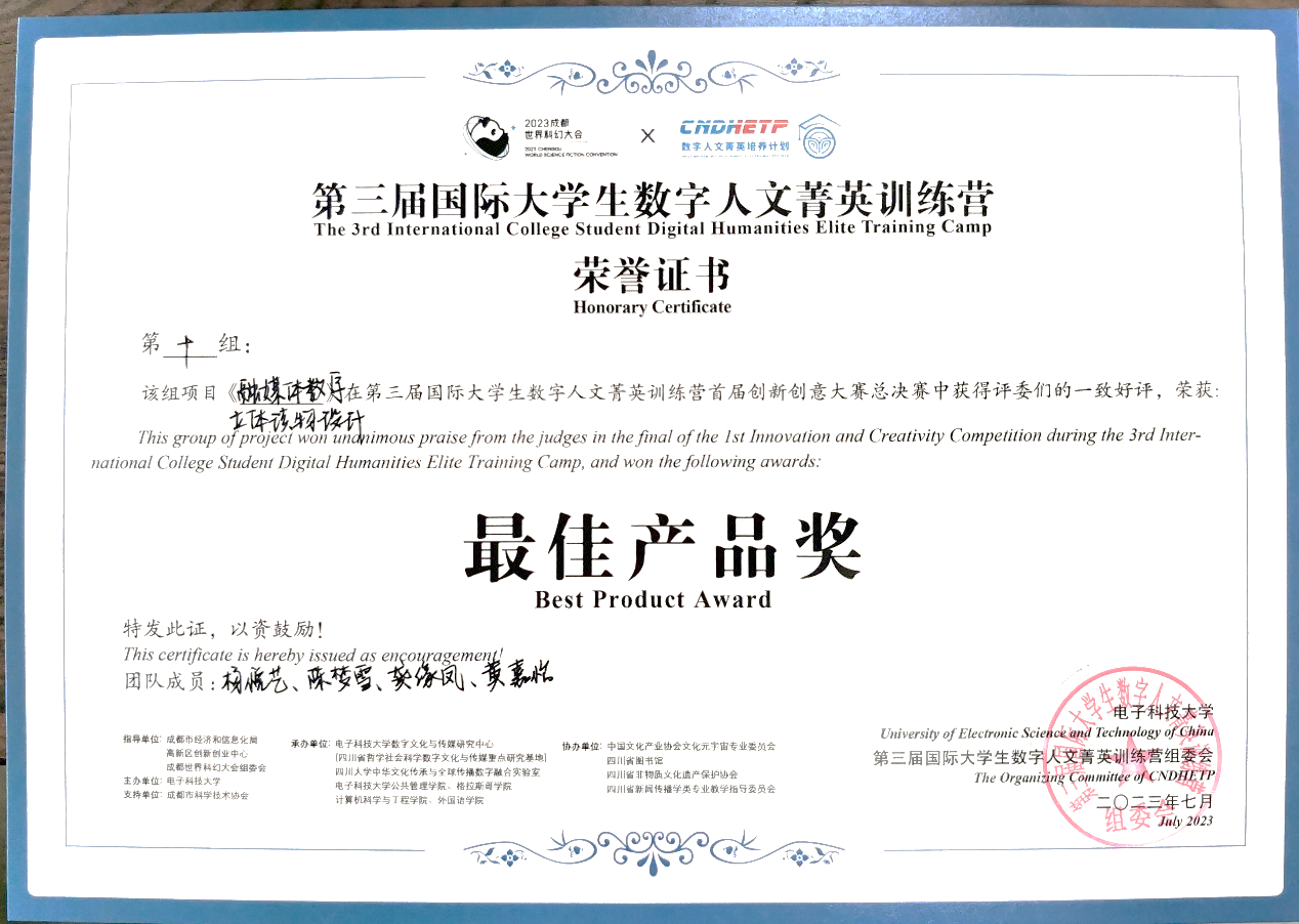 第三届国际大学生数字人文菁英训练营由电子科技大学、四川大学联合主办。训练营秉承“信息技术、文理结合、实习实践”的培养理念,旨在利用电子科大信息科技学科优势和四川大学人文社科资源优势,以及全国各地“数字人文”优质师资力量,培养新时代数字人文交叉复合型人才。
