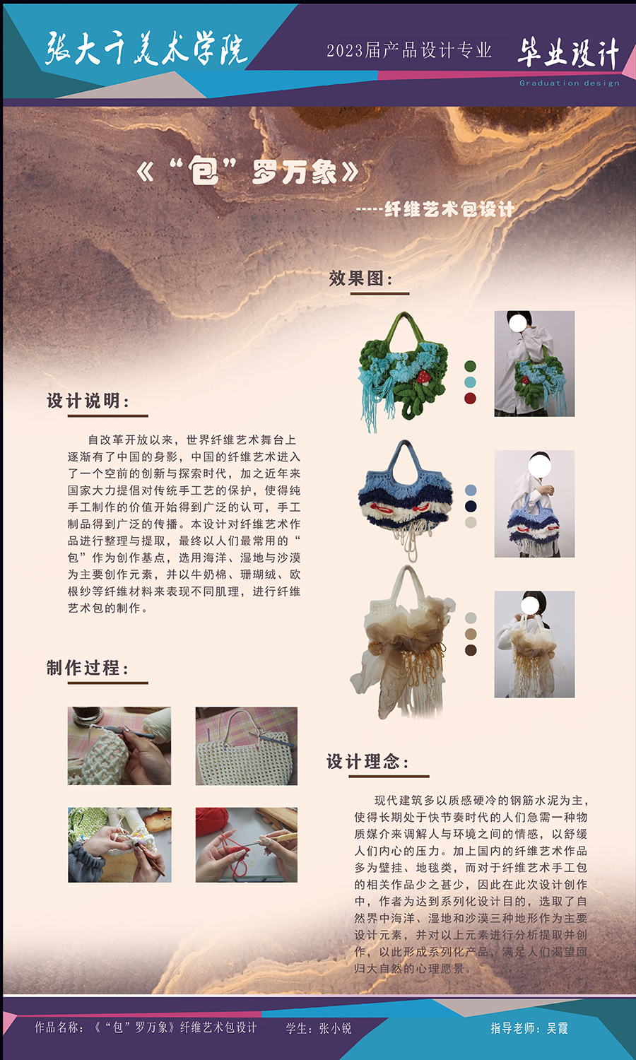 伴随着沱江的微风,沁着大千公园荷花的馨香,英国BET体育365投注官网设计专业2023届毕业作品展如期而至,共展出视觉传达设计专业103名、产品设计专业20名本科学生的毕业设计作品。其中视觉传达设计作品主要包括文创设计、品牌设计、海报设计、包装设计、书籍设计、插画设计等不同类型的创作;产品设计作品主要包括家具设计、陶艺设计、首饰设计、纤维装饰设计等不同类型的生活用品设计。作品题材多样、内容丰富、主题鲜明,作品虽显稚嫩,却饱含毕业生蓬勃的创作激情与不懈的努力。他们在作品创作中关切社会生活、地域文化、时代问题、日常感知等话题,联系自我体验,致力实践探索与创新,借助视觉综合媒介,展现多元的思维,对时代和社会发展动态的敏锐观察,体现年轻群体独立思考、创新能力、社会关怀与时代使命。此次线上毕业设计精选作品呈现了丰富的教学成果,展示了每一位毕业生的创意与才华,凝聚了师生们辛勤努力与智慧结晶。