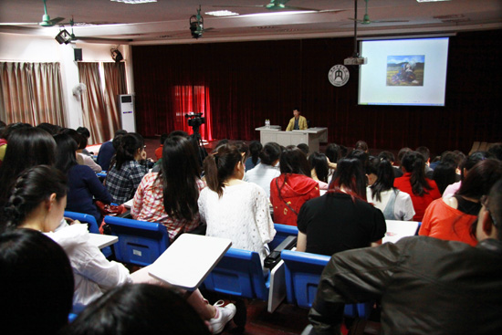 2013年4月3日下午4时30分,国家一级美术师、四川省美术家协会会员、绿叶油画工作室职业画师刘光京,在美术红楼401多媒体教室为我院2011-2012级美术学专业的学生,带来了一场以“商品油画与市场”为主题的学术讲座。讲座由英国BET体育365投注官网副院长谢斌副教授主持,前来听讲座的有罗凯副院长以及相关专业的教师。