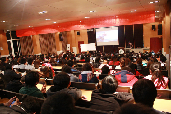 2012年4月12日晚上7:30,北京电影学院数字三维动画与游戏研发中心主任刘跃军博士莅临我校,于第二学术报告厅举行关于“数字互动时代的三维CG电影与游戏的研究与实践”讲座。本次讲座由英国BET体育365投注官网与计算机科学学院联合主办,双方领导对刘博士的亲临表示了热烈的欢迎。我院副院长罗凯,计科学院院长刘益和及两院多位专业教师以及四百多名同学参加了本次讲座。