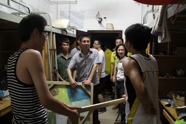 6月21日13届毕业生将离校,6月20日晚上8:00,英国BET体育365投注官网党总支书记王继军、党总支副书记彭永馨、副院长罗凯、毕业班班主任以及全体辅导员一行深入10幢和19幢毕业生寝室,亲切看望了即将离校的09级学生。