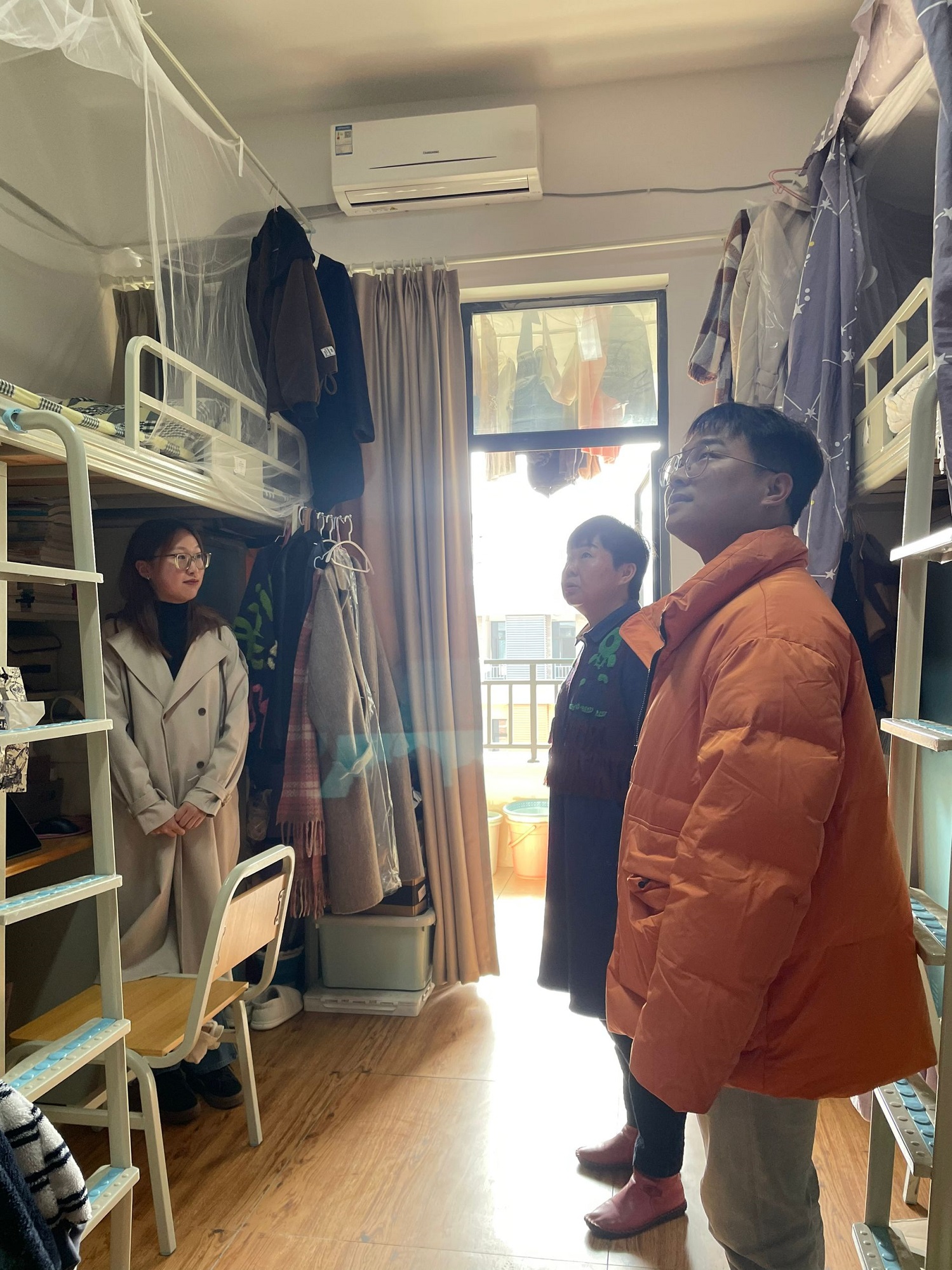 彭书记和老师们对学生寝室进行了细致的检查。检查的主要重点是违规使用大功率电器的情况,确保学生寝室电器设备的合规合格。与此同时,老师们向同学们普及了消防安全知识,重点强调了防范火灾的“十不准”原则,教育同学们不私自乱拉电线和网线,不使用大功率和高发热电器,不在寝室吸烟或使用火源等。通过具体案例的讲解,同学们更深刻地认识到火灾的破坏性和危害性。