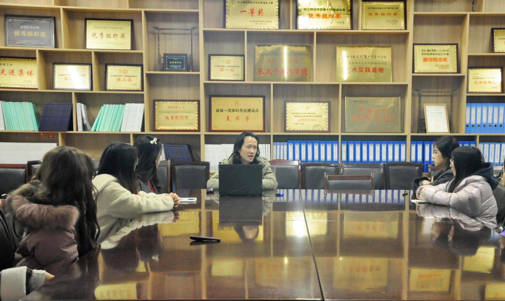 会议伊始,罗院长首先就“巴蜀传统写意绘画的当代价值研究”同大家展开讨论,罗院长表示:构建写意理论体系的目的是为了更好的推进传播我们的中国文化形象以及致力于我们的人才培养。对此同学们深受鼓舞,并对未来的学业发展道路满怀憧憬。随后,罗院长深入阐述了巴蜀绘画的发展、成就、地位三方面内容,还与同学们一起欣赏了何多岑的《春风已经苏醒》,周春芽的桃花系列等相关作品。同学们在欣赏画作的过程中更加直观的感受到了巴蜀写意绘画的魅力,学习其中的绘画技巧,感悟其中的艺术精神。最后,罗院长强调了安全方面的相关问题,并叮嘱同学们要养成良好的饮食和作息习惯,严格遵守校规校纪,全面提升自身综合素质。