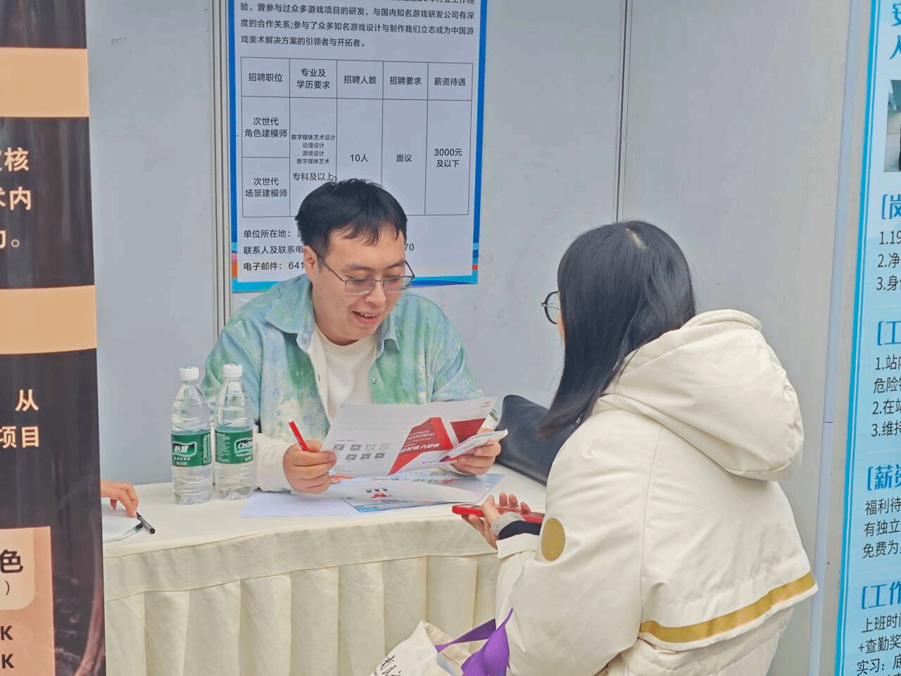 本次双选会汇集了众多优质企业,提供了涵盖多个艺术领域的就业岗位。学院领导一行重点走访了与美术、设计等专业相关的用人单位展位,与企业负责人深入交流,了解行业人才需求趋势,并热情邀请企业来院开展专场招聘。