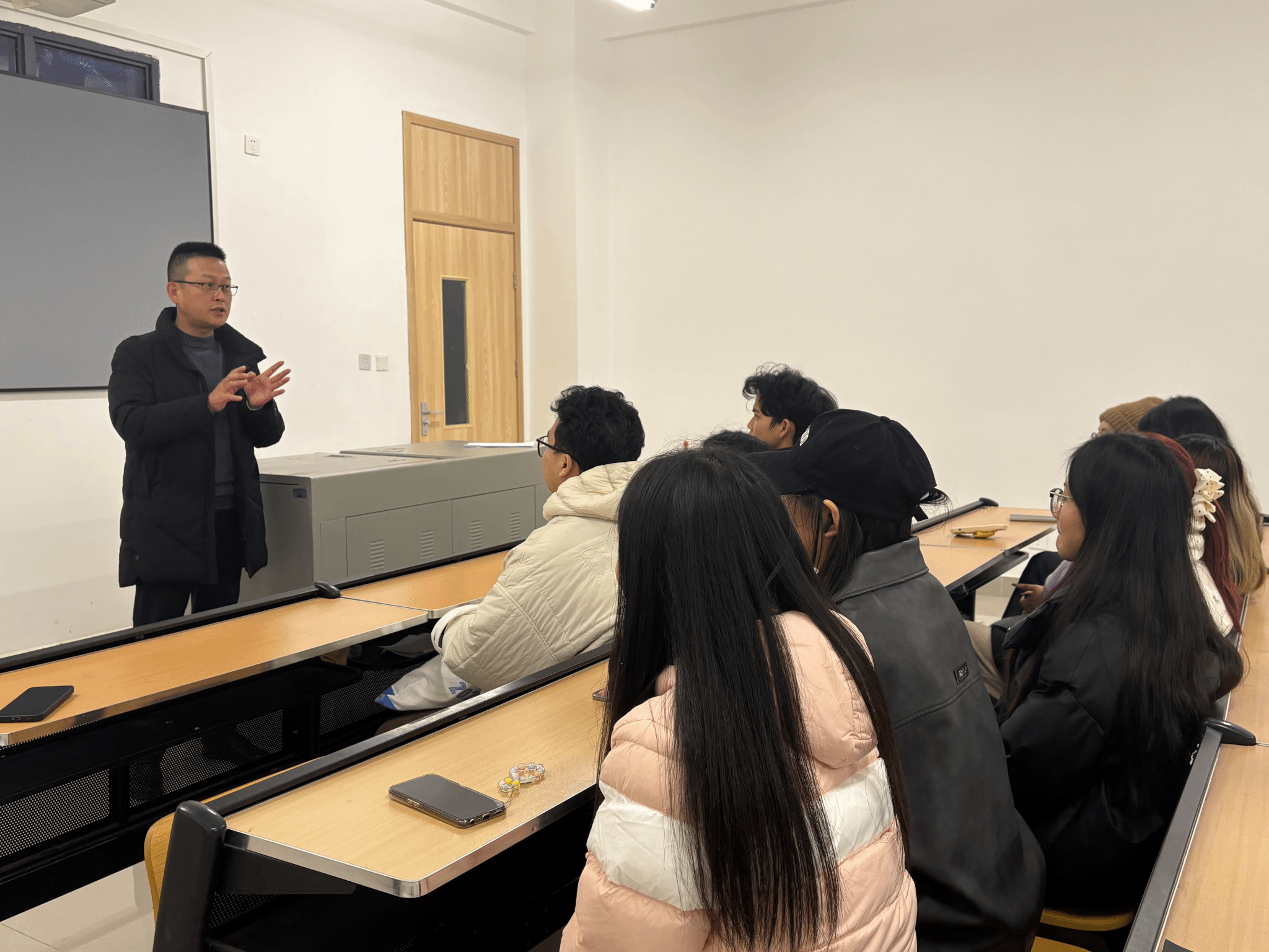 随后,邓部长与同学们进行了亲切深入的交流。从学生成长成才的全局出发,重点围绕学业发展和生涯规划给予指导。邓部长指出,同学们在扎实学好专业知识的同时,应主动了解本专业的发展前沿与就业趋势,结合个人兴趣与特长,科学规划未来发展路径。他表示,将作为同学们成长路上的支持者,随时欢迎大家就学业困惑、生涯选择等话题进行交流,并尽力提供帮助。