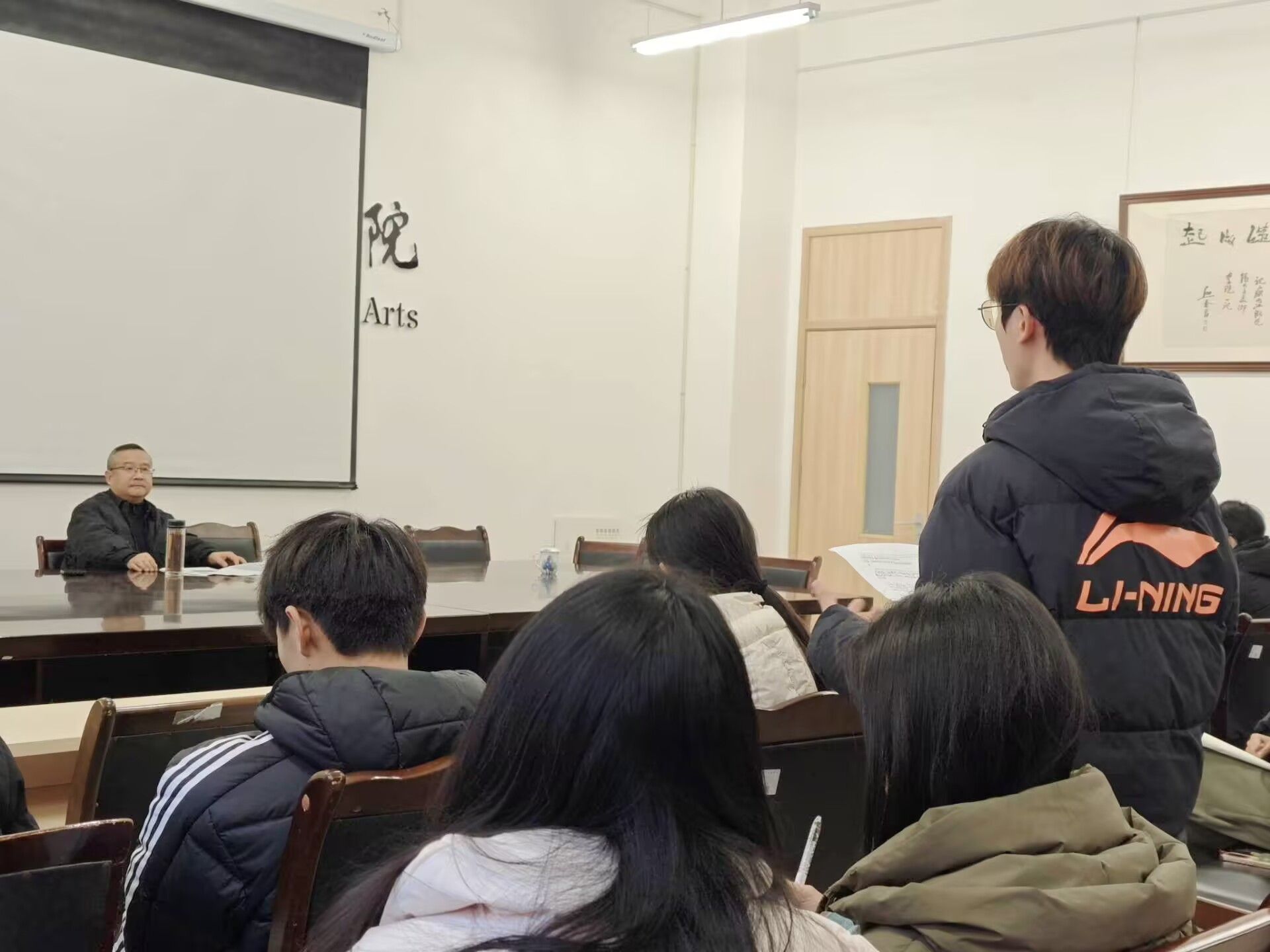 活动伊始,杨坤院长走进《国画花鸟基础》课堂随堂听课,实地了解同学们的专业学习状态。随后,他围绕美术教育专业特色,以学习初心、审美认知、专业感悟与未来职业规划等核心方向提出问题,与同学们进行深入交流。杨院长通过启发式提问,引导大家反思求学初衷、深化专业理解,并在交流中帮助同学们逐步明晰未来的发展方向。