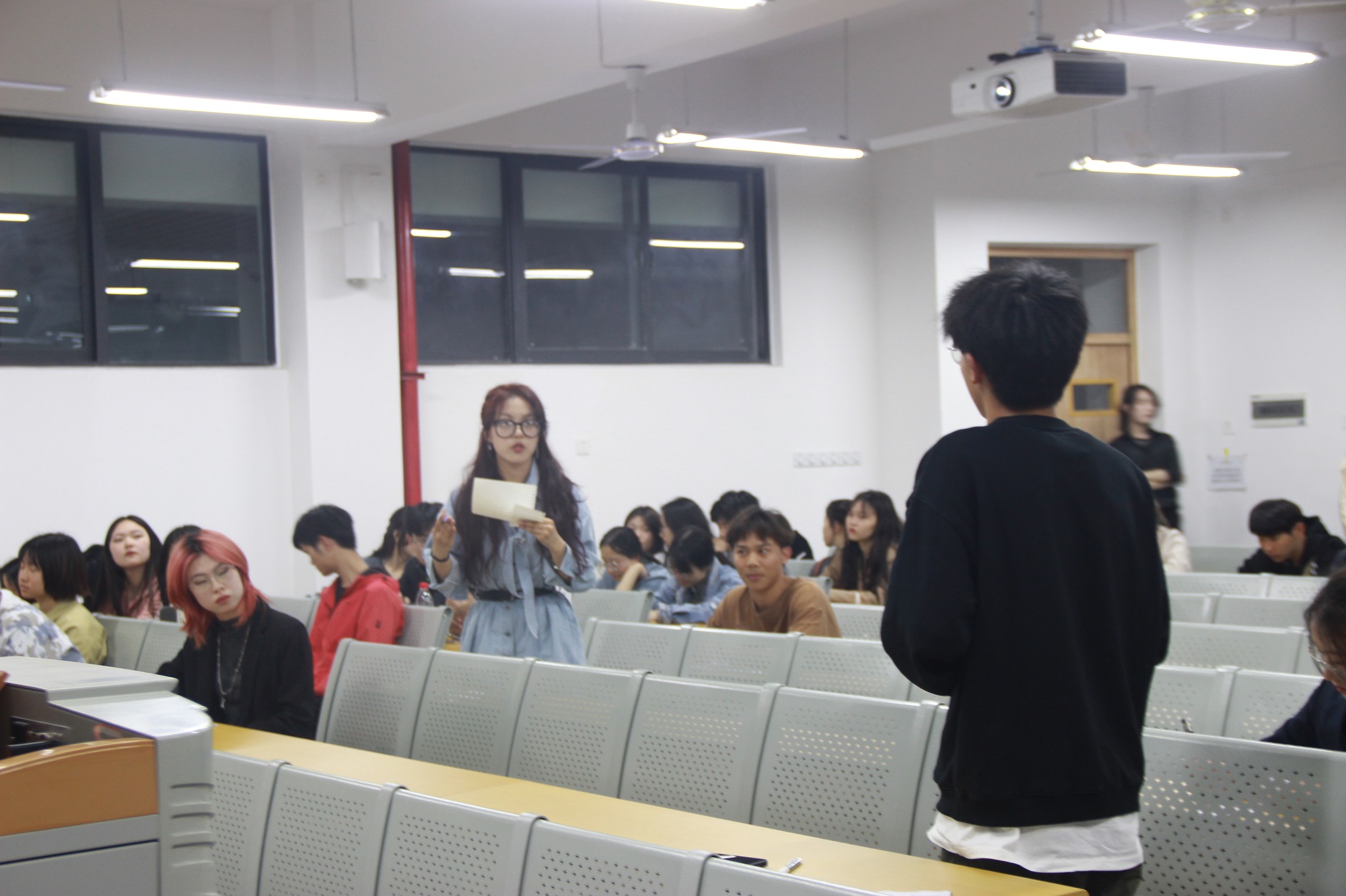 本次辩论赛分为比赛和点评两个环节。比赛分为开篇立论、攻辩、攻辩小结、自由辩论、对辩总结陈词五个小环节。我院一辩以“应该倡导年轻人为自己而活”的观点为正方,地资学院则认为“不应该倡导年轻人为自己而活”为反方。双方选手结合理论和典型事例展开深入的辩论。赛场气氛十分紧张,台下观众们全神贯注,掌声不断。最后,往届校辩论队队长郭成旭同学对各位辩手的表现进行精彩点评,并传授辩论技巧。