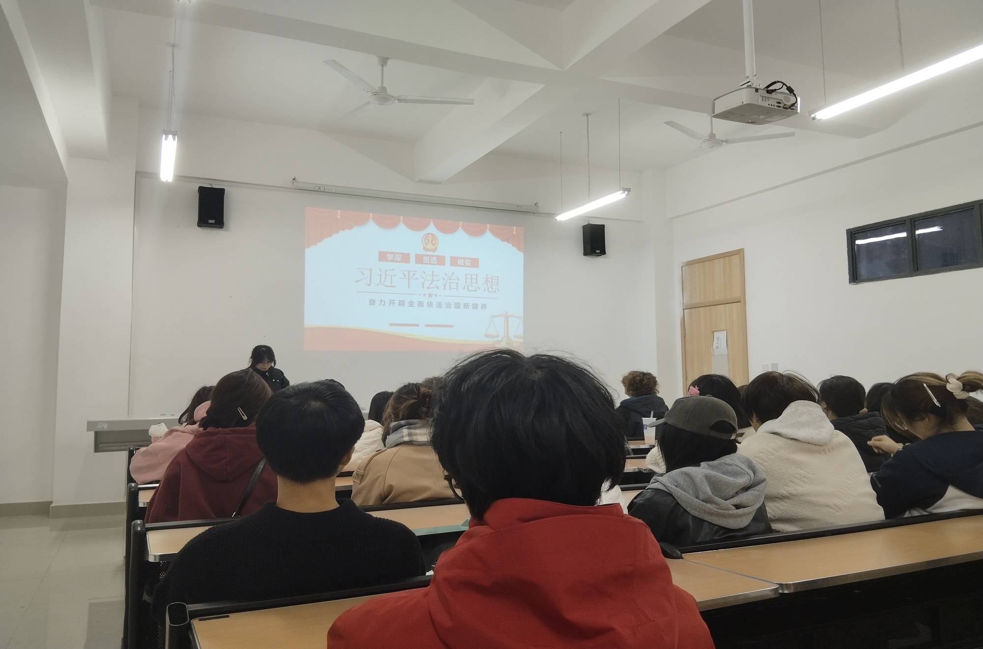 为深入贯彻学习习近平法治思想,加强同学们对宪法知识的学习和了解,提高同学们的法律意识和法治观念。12月3日,各班级在大千楼组织了以“普及宪法知识,弘扬法治精神”为主题的班会活动。