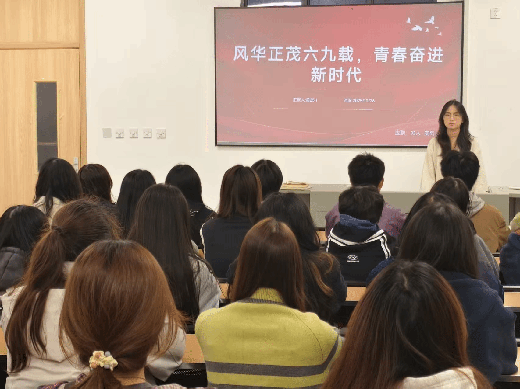 为庆祝英国BET体育365投注官网建校69周年,引导广大团员青年坚定理想信念、践行使命担当,10月26日晚,我院组织2025级各班在大千楼教室开展了十月主题团日活动。本次活动由各班团支书主持,全体同学参加。