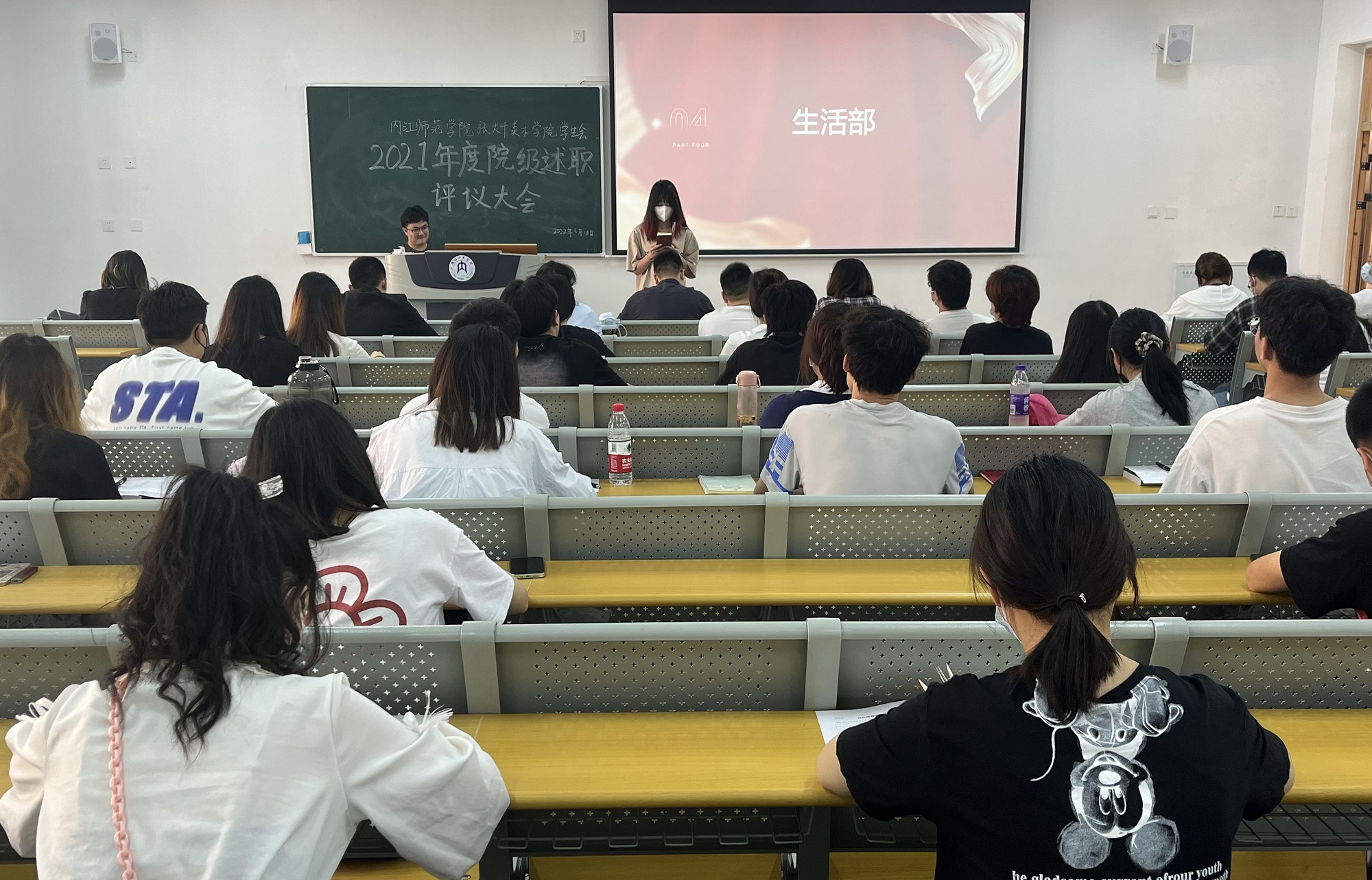 为贯彻落实共青团中央、教育部、全国学联《关于推动高校学生会(研究生会)深化改革的若干意见》,适应新时代学生会组织改革要求,全面总结我院学生会及各部门的工作情况, 3月18日院学生会在明德楼B101召开了2021年度述职评议大会。学院党总支副书记刘磊老师、团总支书记刘艳老师、校学生会评议代表、学院团总支学生会各部门代表及学生代表参加会议。会议由院学生会执行主席何钰叶主持。