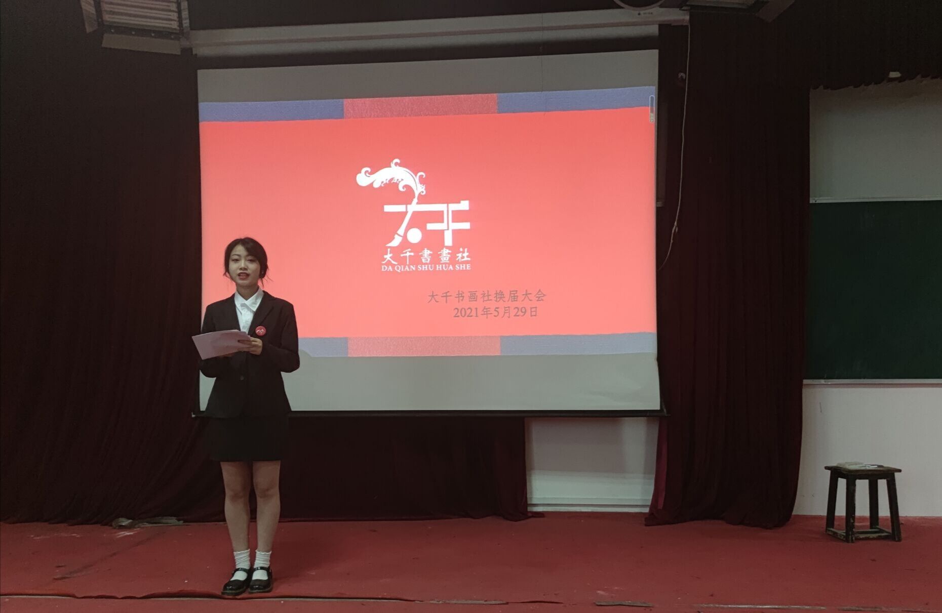 5月29日,为使大千书画社更好的传承和发展,我院大千书画社在中文楼501室举行了第十三届换届大会。大千书画社的会长、团支书、部长、志愿者、以及全体社员参加了此次大会,由大千书画社会长黄岚主持。