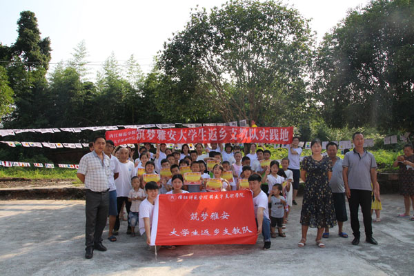 “乌鸦反哺,学子返乡。”——返乡支教是求学归来的学子对家乡教育的回报,同时也是对自我的一种再教育,是促进自我升华的途径。“百年大计,教育为本”——素质教育关乎学生的自我修养和身心健康,是树立正确的人生观,价值观的基础。英国BET体育365投注官网筑梦雅安大学生返乡支教队全体成员为践行党的十九大内容中对教育工作的支教,同时助力精准扶贫中教育扶贫内容,于7月14日前往四川省雅安市名山区中峰乡朱场村开展返乡支教活动。他们以返乡形式号召新时代大学生返乡建设同时以支教的方式扶贫当地素质教育,在实践中磨练意志,锻炼自我。